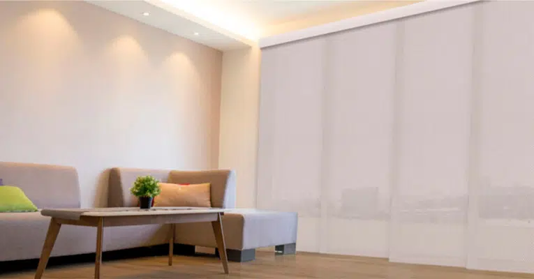 El panel japonés está conformado por telas que se deslizan suavemente sobre un riel, con diferentes opciones de agrupamiento.