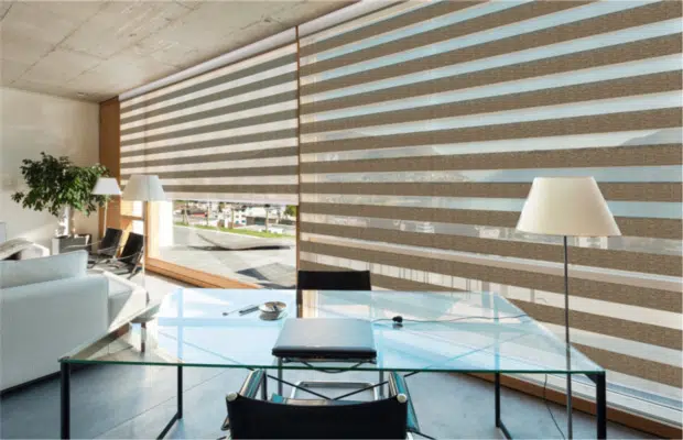 La Persiana Sheer Elegance es un sistema de persiana doble función que permite controlar la privacidad de tus espacios, a través de telas con franjas opacas y trasluz.
