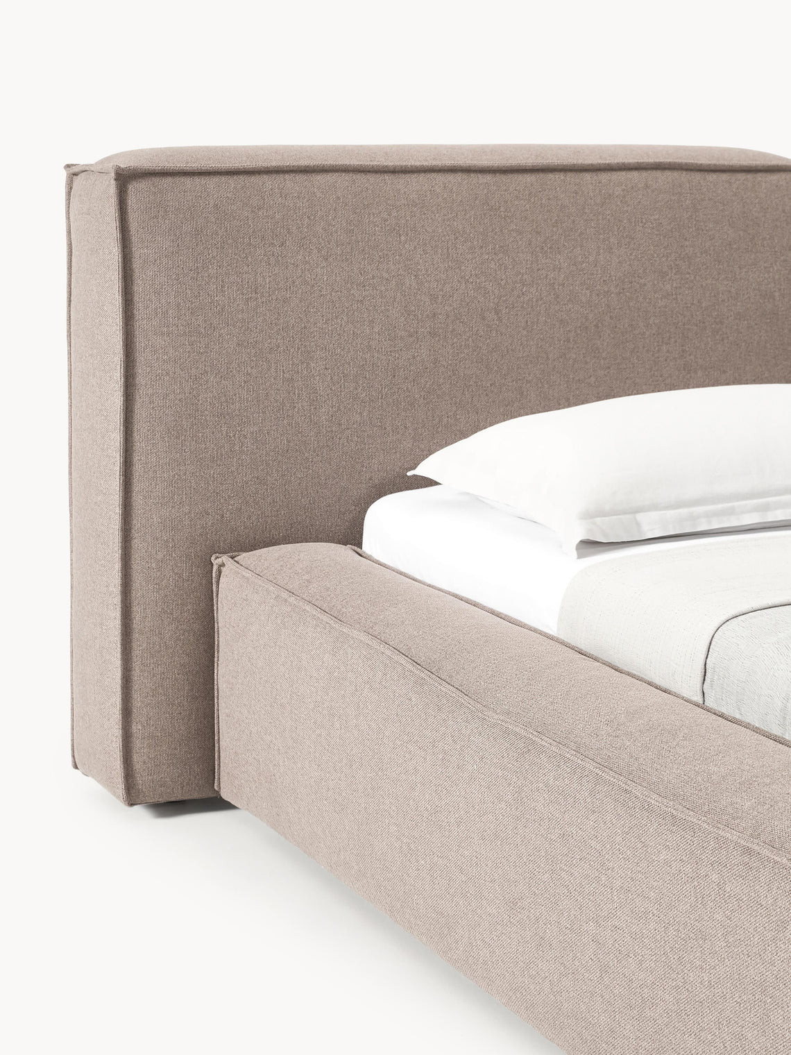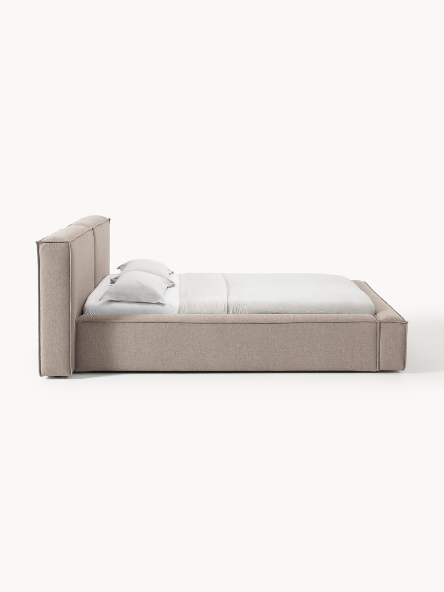 Las cómodas camas tapizadas están disponibles sin espacio de almacenamiento y en dos colores y un tejido. Los marcos anchos y acolchados son ideales para guardar su teléfono inteligente o control remoto, y la cabecera lujosamente acolchada es súper cómoda para apoyarse mientras lee, mira televisión o desayuna en la cama. LENNON es simplemente el epítome de la comodidad.