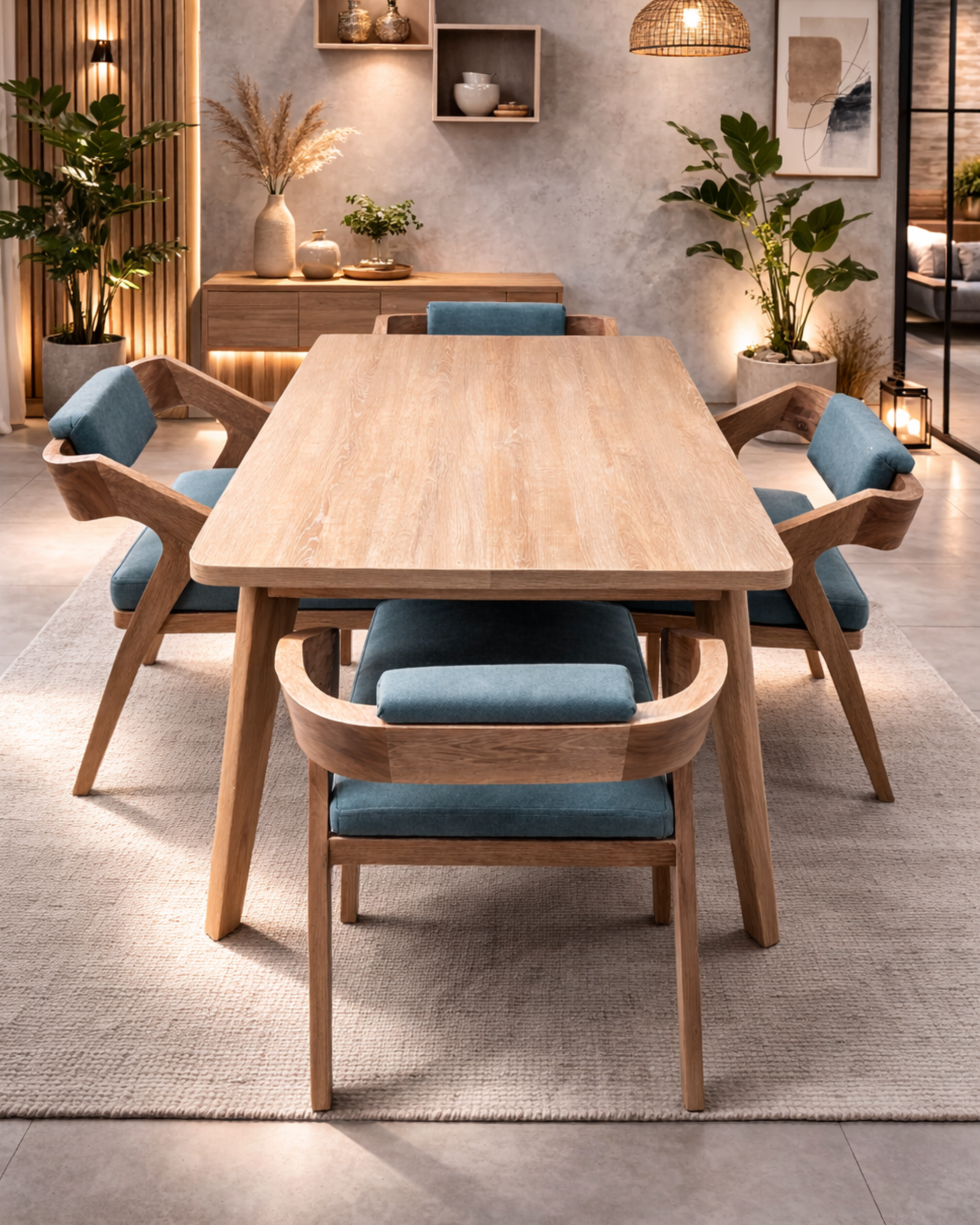 El Comedor Athenas es la combinación perfecta entre diseño atemporal y practicidad. Pensado para hogares que valoran la calidez de la madera natural y la funcionalidad en cada detalle, es una pieza que transforma el comedor en un espacio acogedor y con carácter.