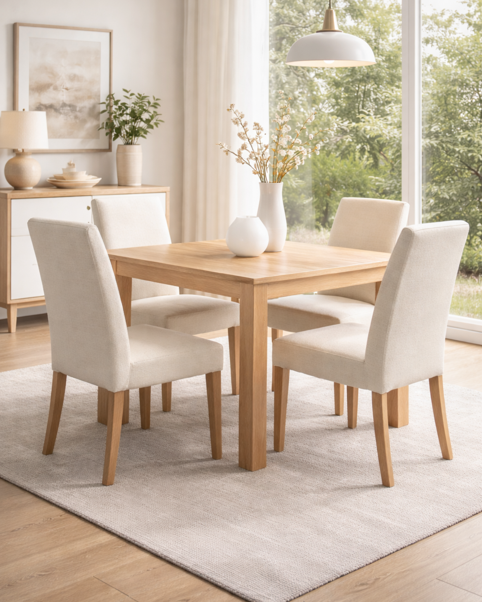 Con capacidad para 4 personas, es ideal para espacios pequeños o medianos que buscan un comedor práctico sin perder sofisticación.
