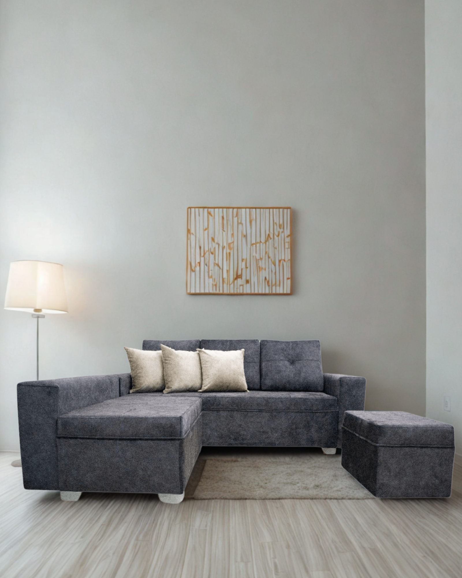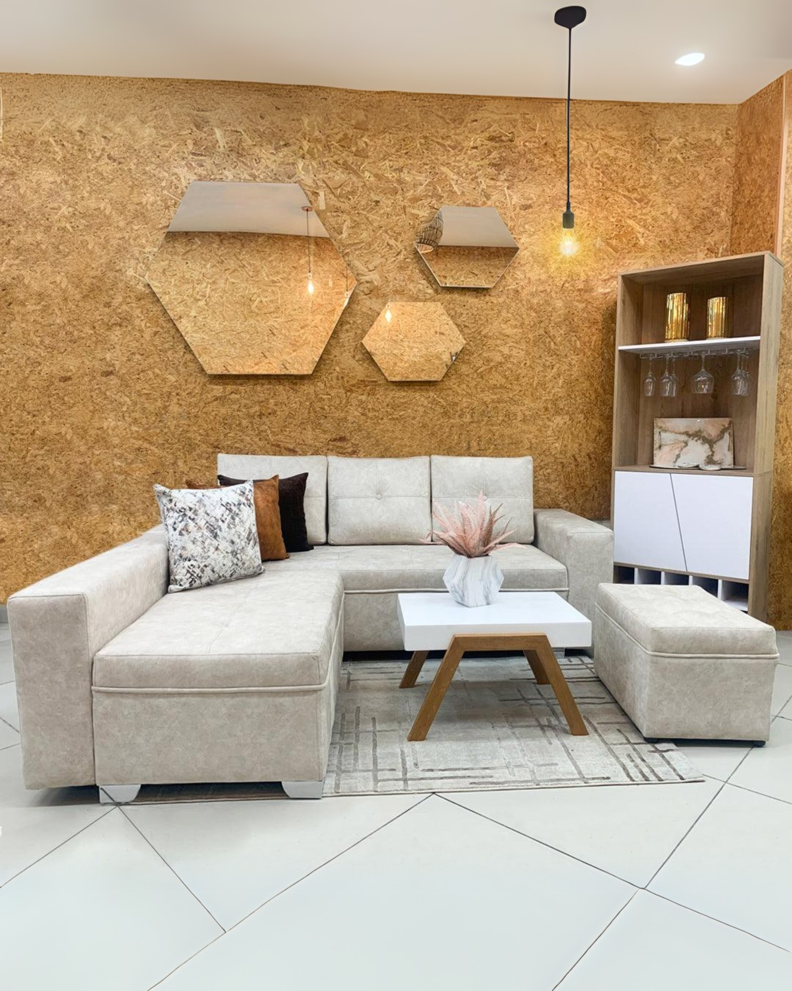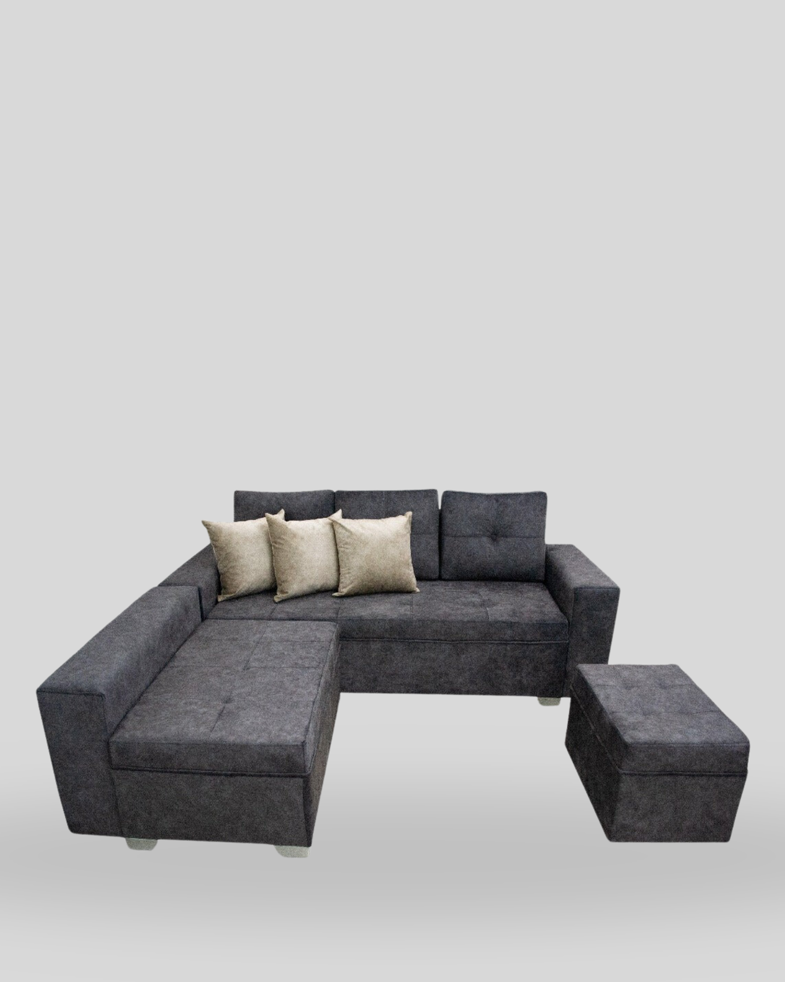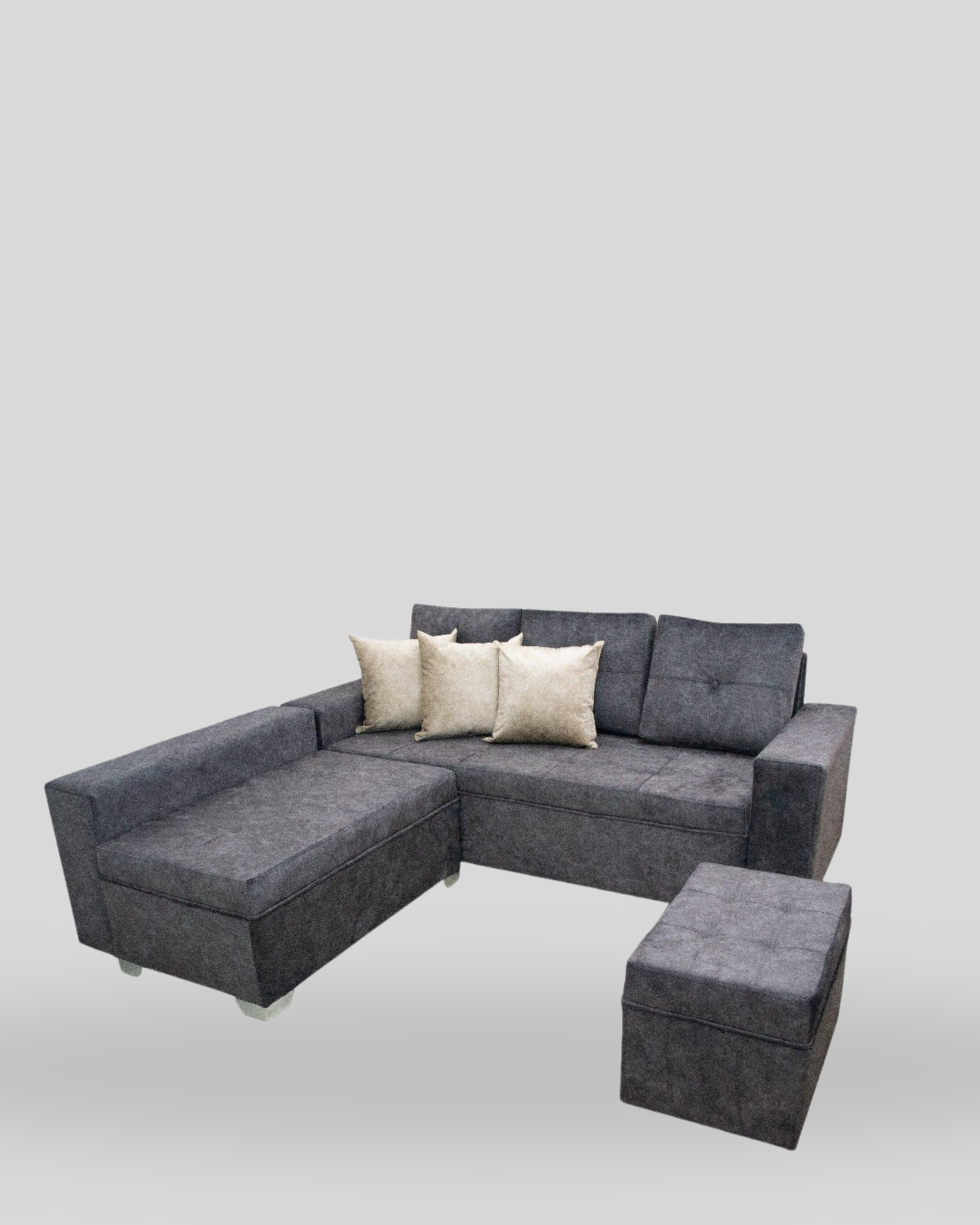 • Tu compra incluye: Sofá Esquinero Dubai, Sheilon,  1 puff, 1 mesa y 3 Cojines decorativos.
