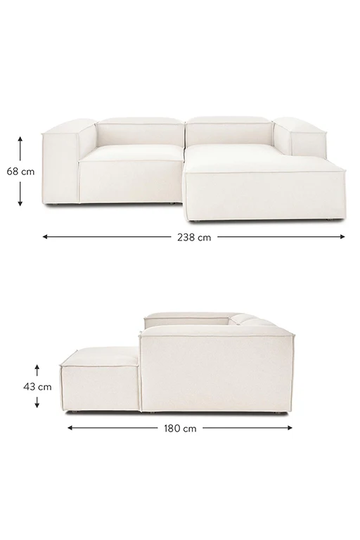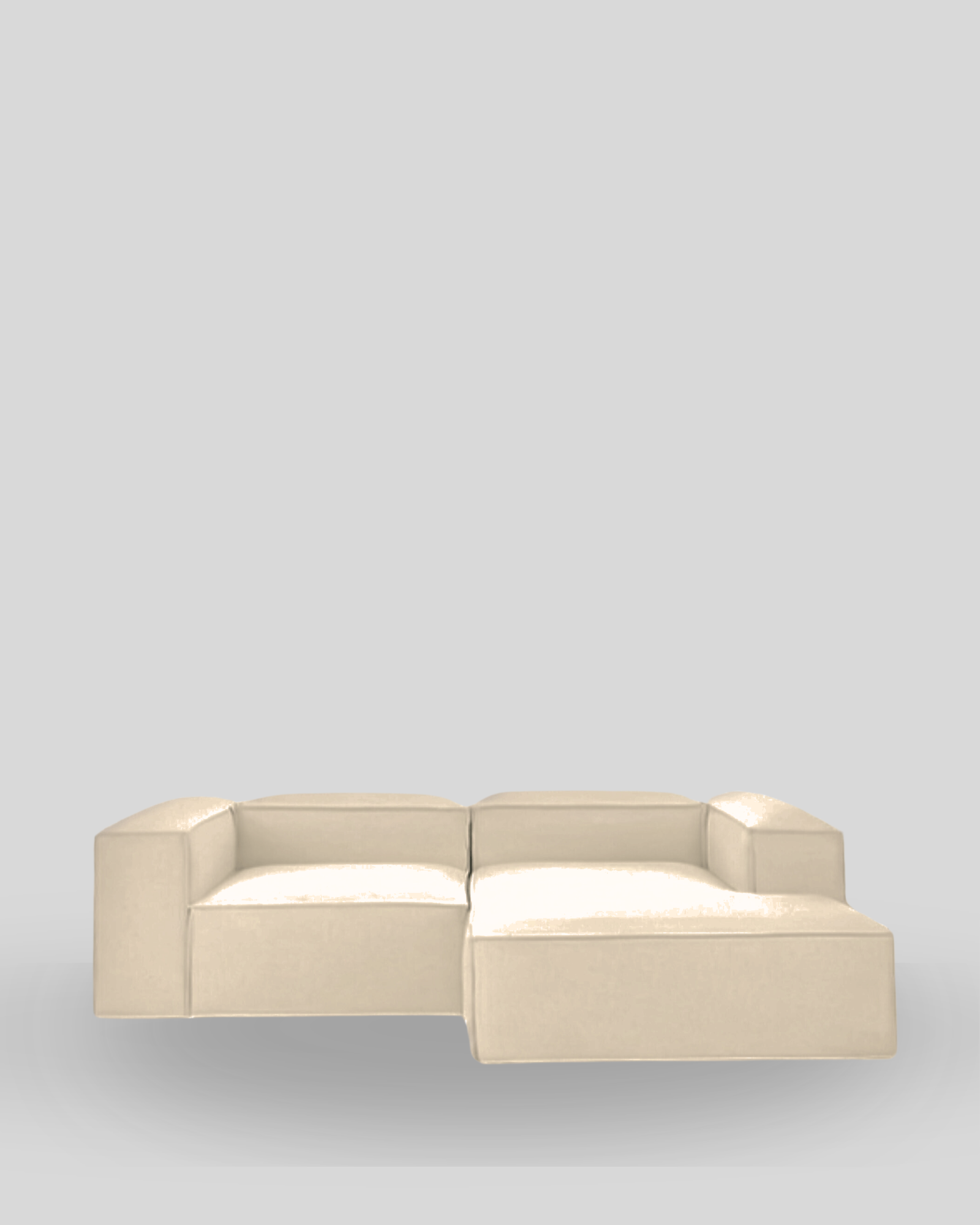 Este sofá se entrega en dos partes que puedes ajustar según prefieras. La chaise longue está ubicada en el lado derecho al mirar el sofá de frente.