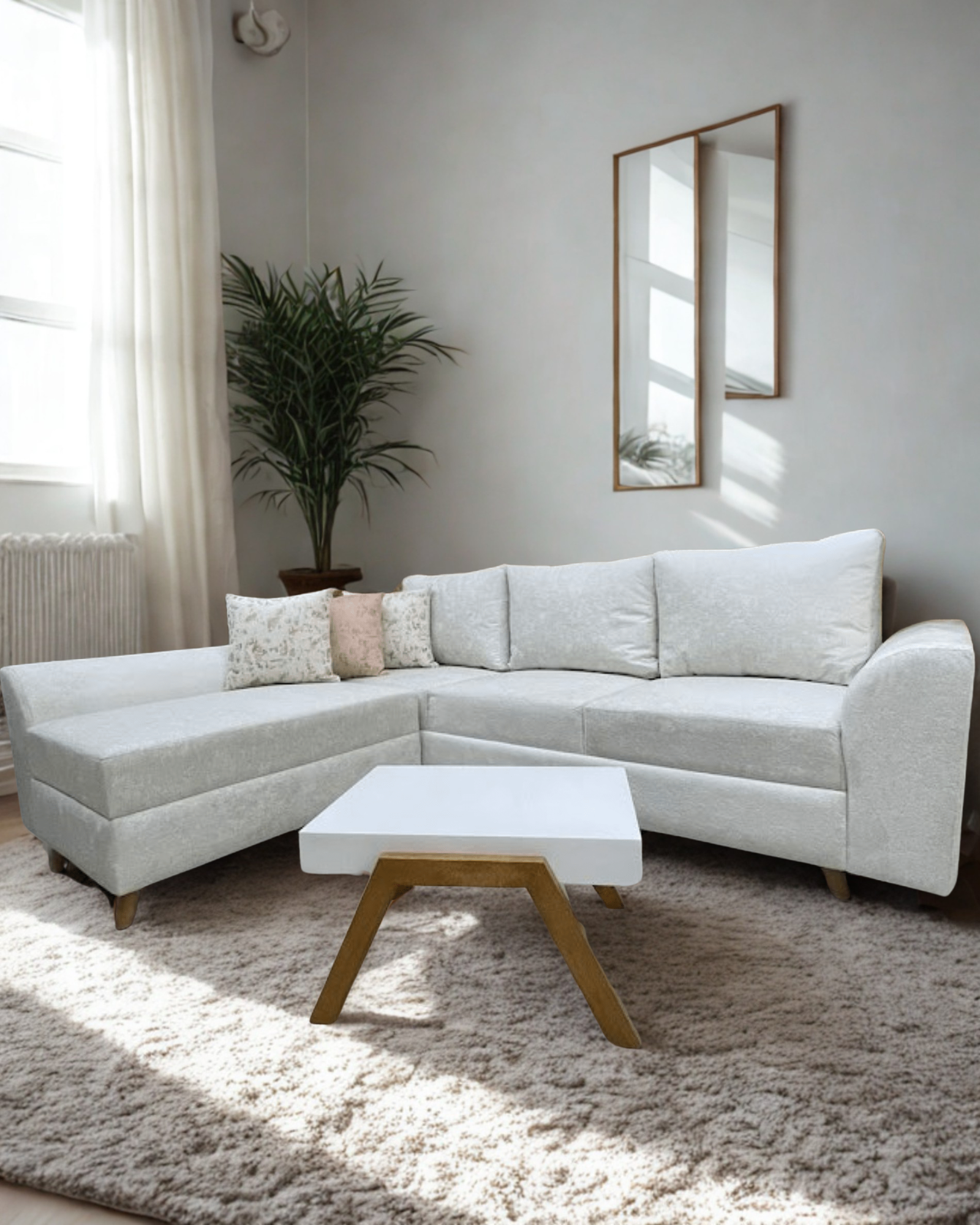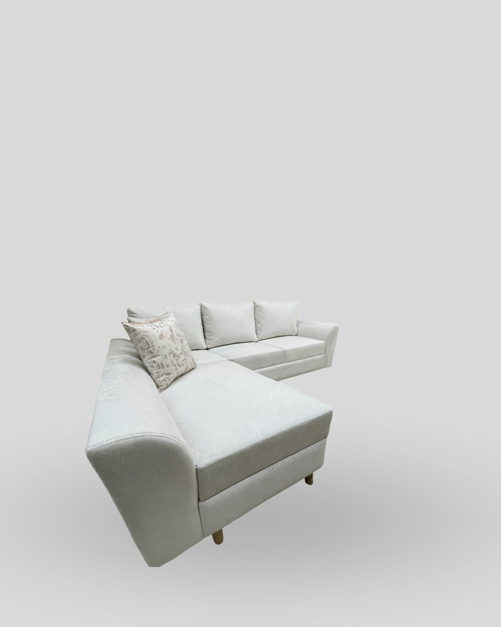 Configuración Esquinera La configuración esquinera del sofá aprovecha al máximo el espacio de tu sala de estar, permitiendo una disposición más eficiente y acogedora. Este diseño es ideal para reuniones familiares o sociales, proporcionando un amplio espacio para todos.