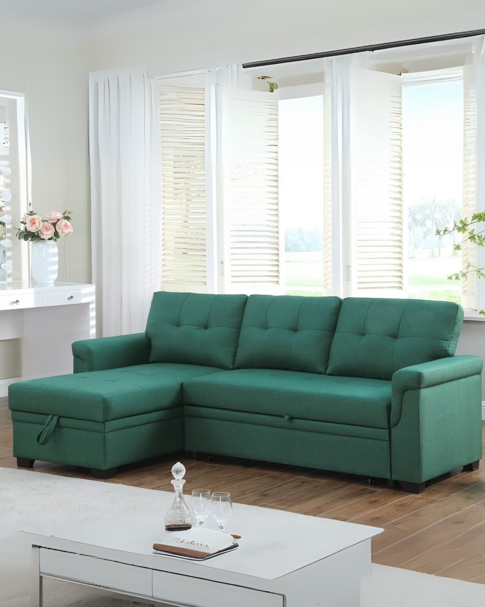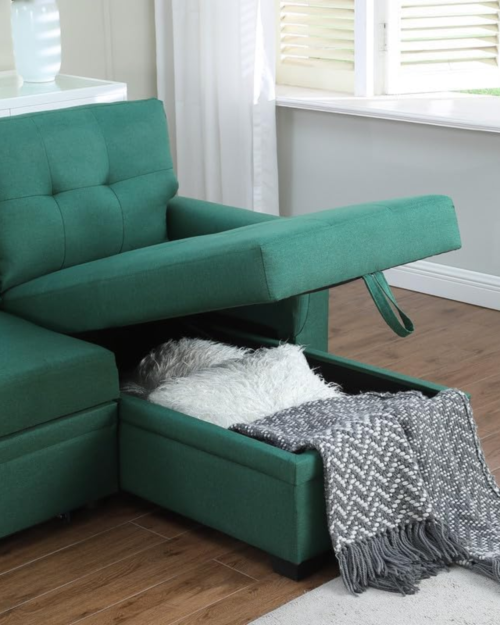 Muebleo te ofrece un esquinero con diseño moderno, funcional e ideal para espacios donde requieres un mueble versátil que tenga función de sofá en tu sala, pero también de descanso tipo cama. Además te ofrece un espacio tipo baúl para que puedas guardar lo que quieras para su tamaño.