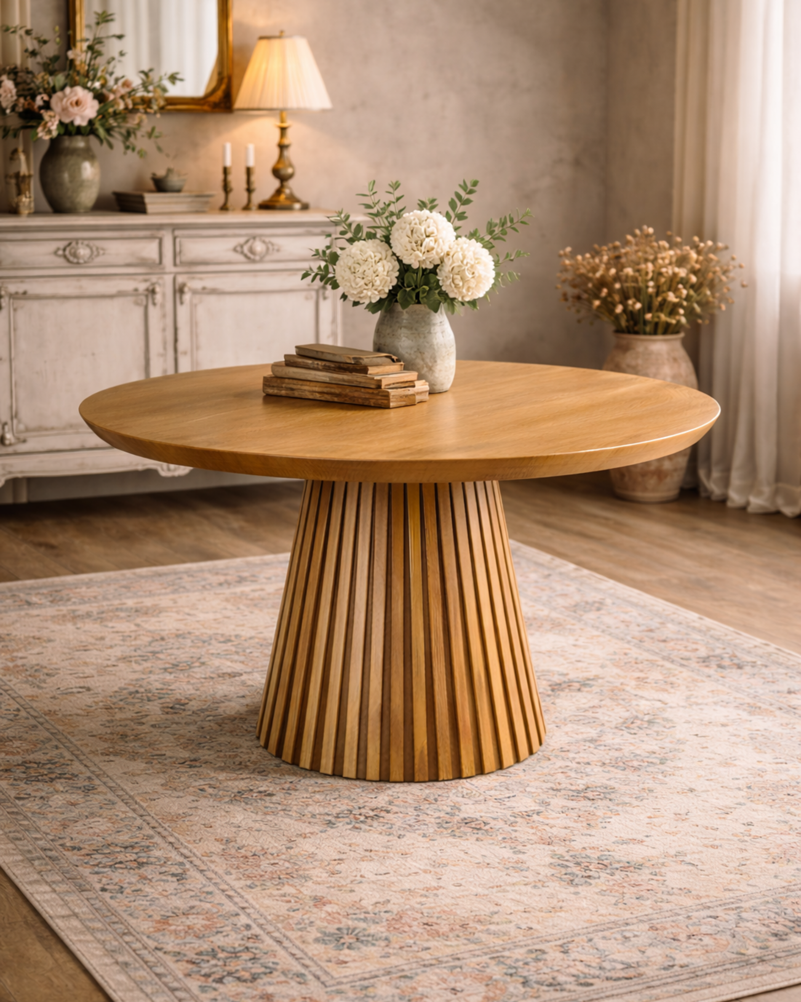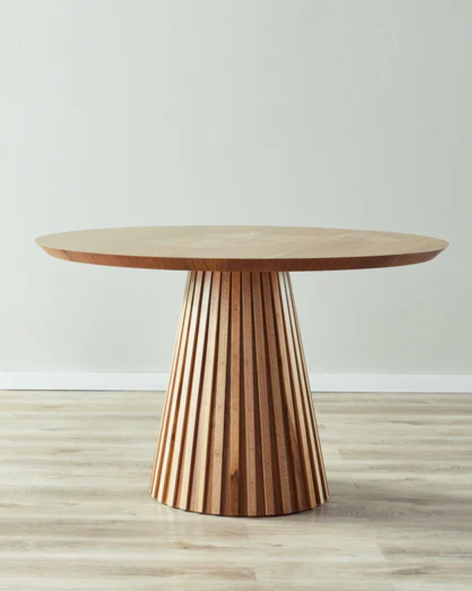 Elaborada en resistente roble, aporta un toque de elegancia natural con un acabado pulido que resalta la belleza de la madera. Con capacidad para cuatro personas, esta mesa es perfecta para espacios pequeños o medianos, brindando una atmósfera cálida y acogedora para cenas familiares o reuniones informales.