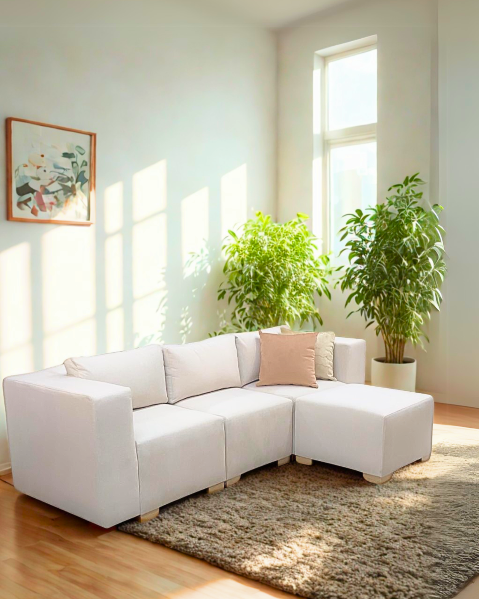 Este sofá modular es una pieza minimalista y versátil que se adapta a cualquier espacio. Con su diseño delicado, aportará elegancia a tu hogar. Funcionalidad y estilo en un solo mueble.