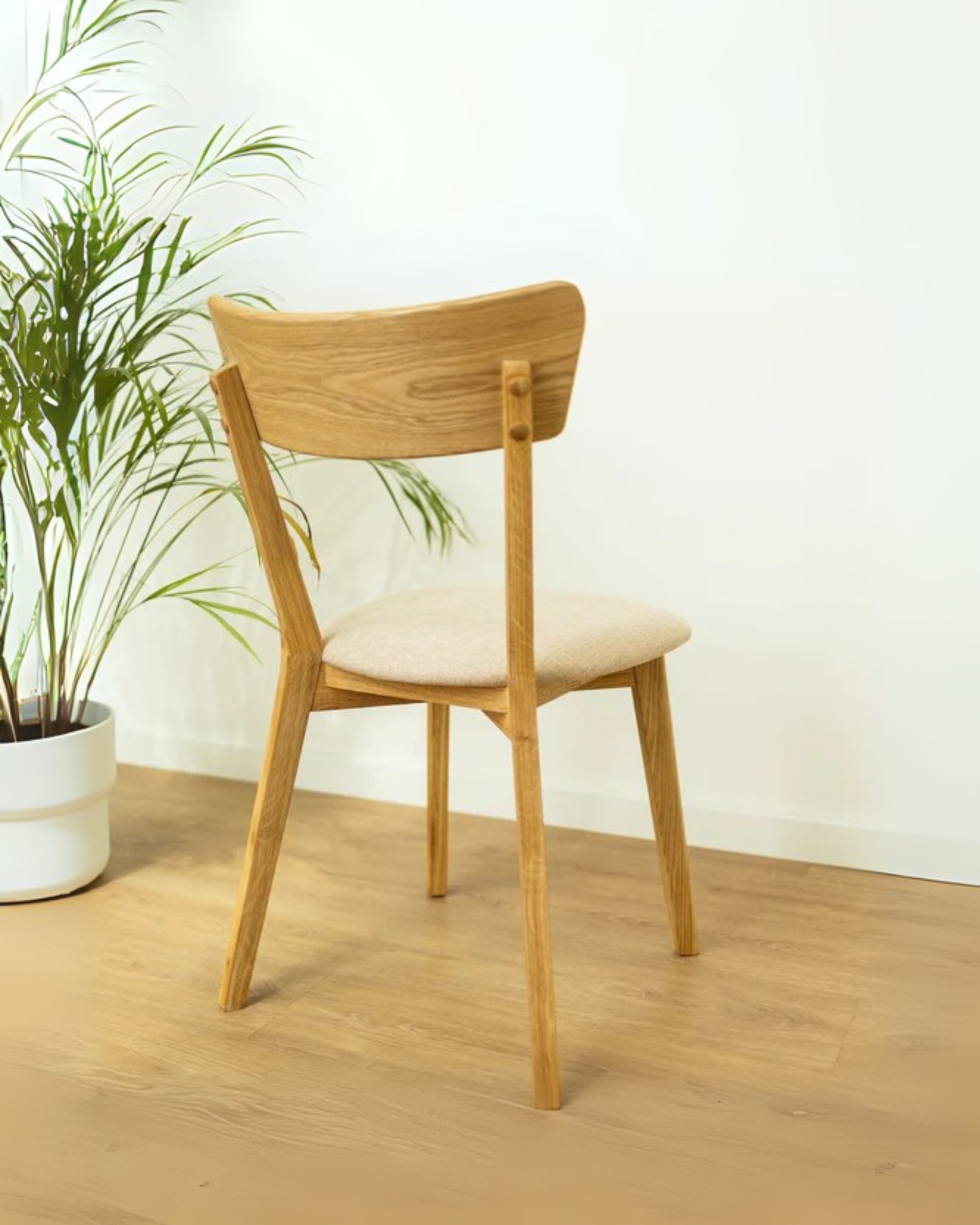 La silla de comedor Bilbao combina la elegancia del diseño contemporáneo con materiales de alta calidad. Su estructura está fabricada en madera de roble, conocida por su durabilidad y belleza natural, que aporta calidez y resistencia al conjunto.