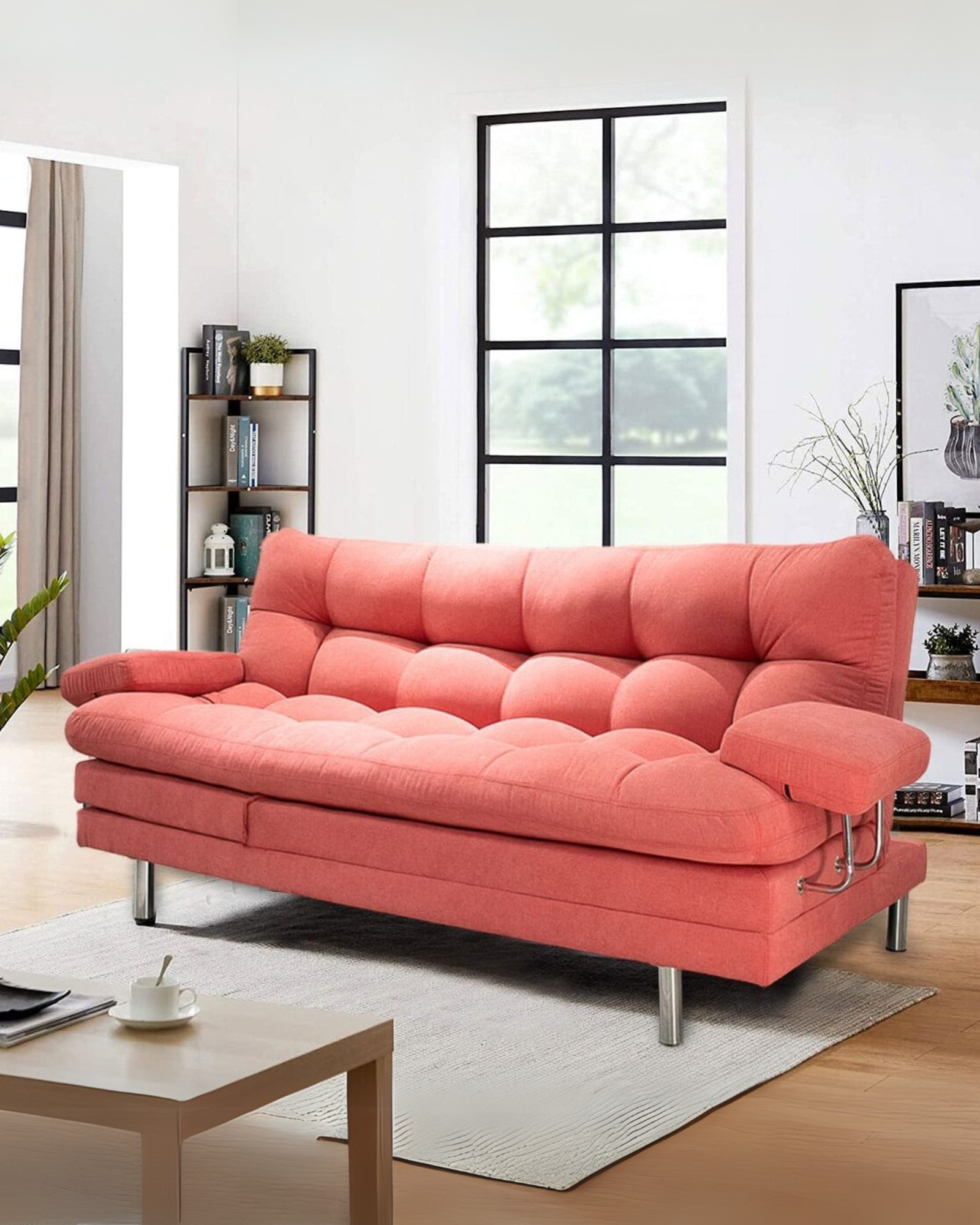 Este sofá cama combina un diseño moderno y funcionalidad excepcional, brindándote la versatilidad que necesitas en tu sala de estar, así como un práctico sistema de 5 posiciones reclinables y posa brazos removibles para usar como cabeceros.