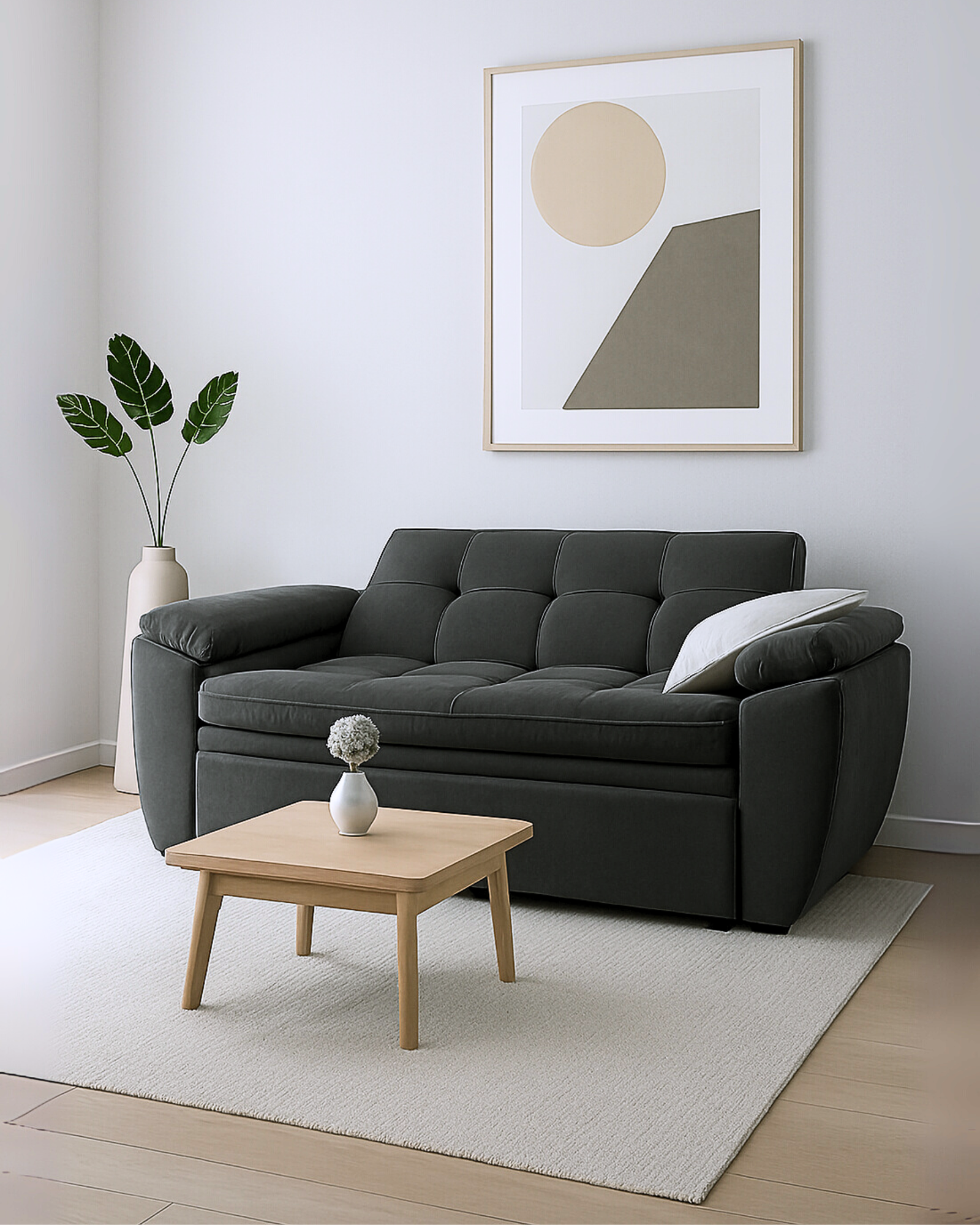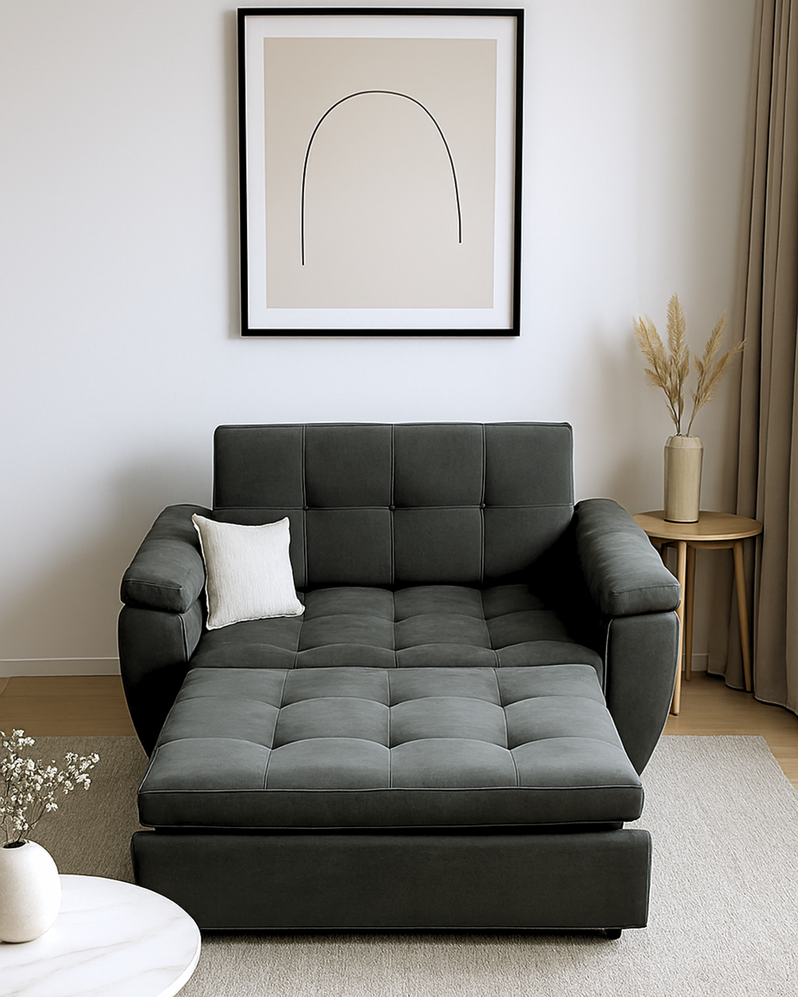 Muebleo te ofrece un Sofá cama con diseño moderno, funcional e ideal para espacios donde requieres un mueble versátil que tenga función de sofá en tu sala, pero también de descanso tipo cama.
