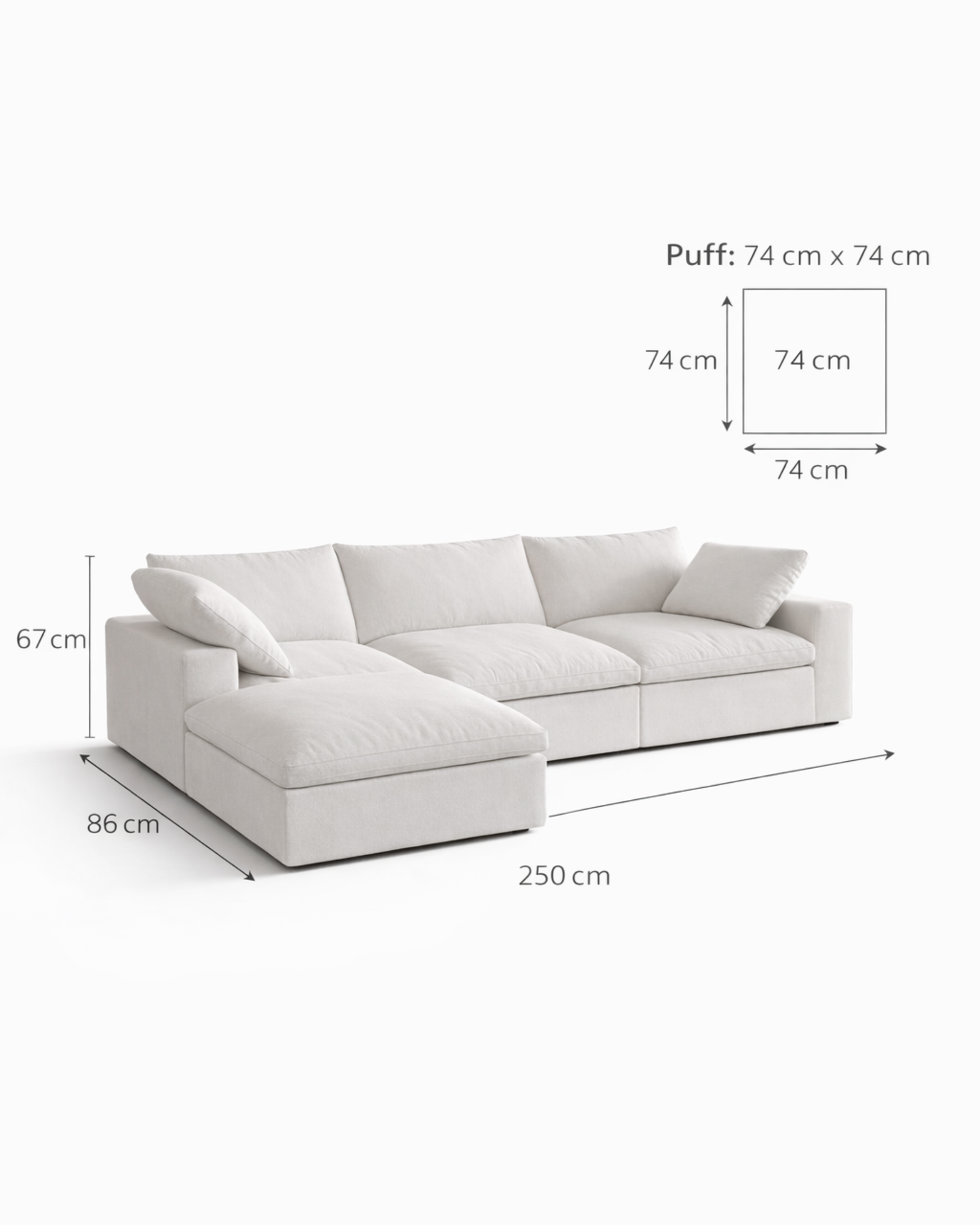 Puff: 74 cm x 74 cm