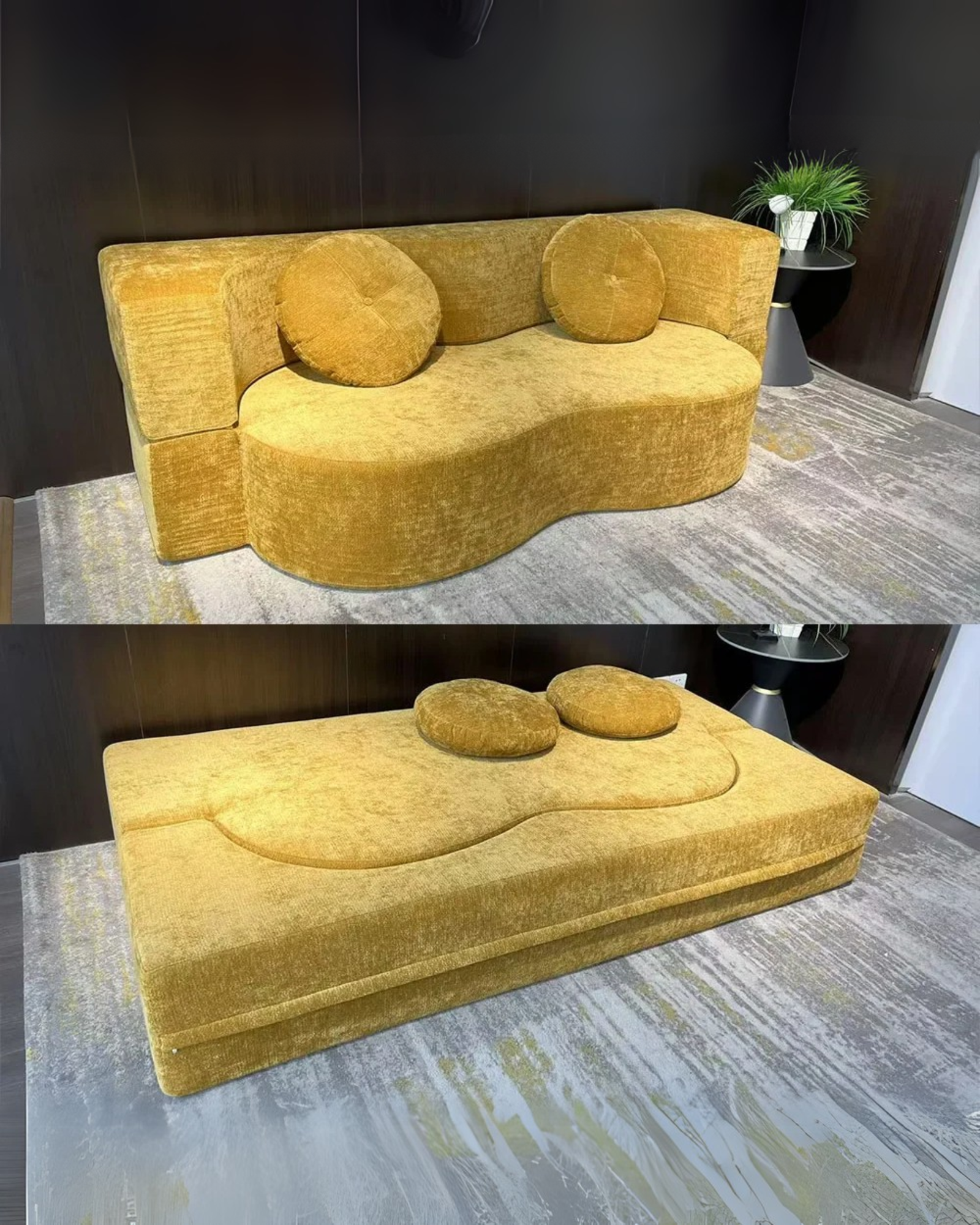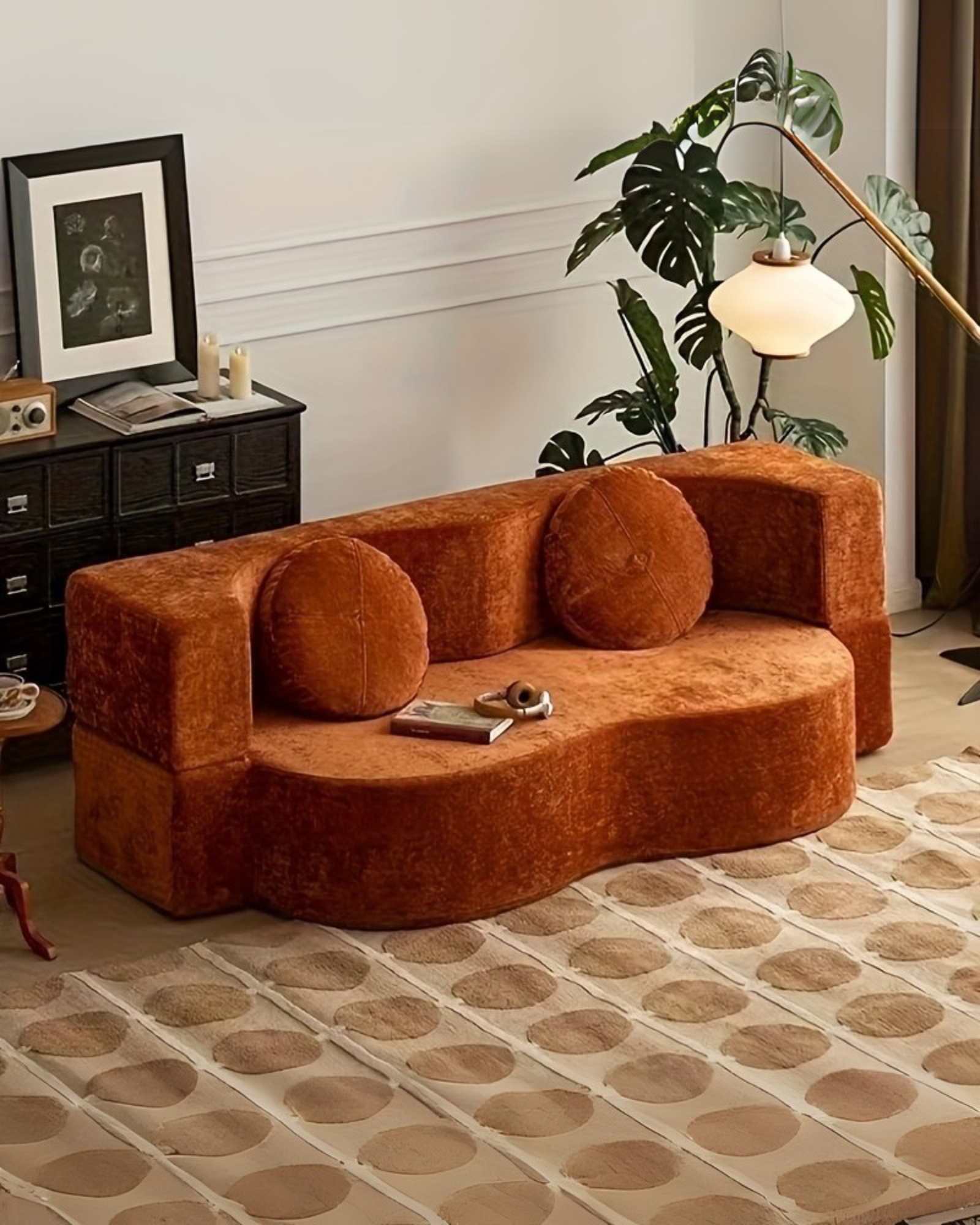 Su forma curva y textura aterciopelada aportan calidez y estilo a cualquier ambiente. Ideal para recibir visitas, descansar o relajarte con una buena película, Tamy combina confort, diseño y practicidad en un solo mueble.
